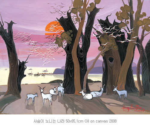 이왕 화집을 발간하는 김에 새로 그린 신작들로 조그만 전시회를 가지고자 합니다. 단순화된 형체와 색채로 나만의 공간을 만들다보니 그 속에 철새가 날아들고 아름다운 꽃들이 자리 잡아 저마다의 빛깔과 향기를 내뿜고 있습니다. 이 그림들을 가지고 제 옆에서 또는 앞과 뒤에서 밀어주시고 지켜봐 주신 모든 이들에게 고개 숙여 인사드리고 감사의 마음을 전하고 싶습니다. 부디 오셔서 저와의 인연을 소중히 여겨 주시기를 바랍니다.