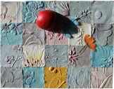 ▲ 하모니_Paper on Canvas_53x41cm_2014 내 작품화면에는 땅, 씨앗, 꽃봉오리, 꽃 수술, 꽃, 잎사귀 등 자연의 다양한 모습이 나타난다. 시기적으로 피는 것을 한 화면에 모두 담아놓고 여기저기 늘어놓음으로써 그들에게 자유를 주는 여유도 부렸다. 그러던 어느 날, 햇빛에 반짝이는 수많은 사과나무에 주렁주렁 매달린 사과를 보고 이런 생각이 들었다. 한 농부의 근심 어린 정성과 열매를 키우기까지의 노력과 고생이 그 무엇보다 더 아름답다고 할 수 있을까? 그래서 그 열매, 즉 사과를 위한 화면을 만들어 주고 싶었다. 누군가에게는 사과만을 위한 시간의 과정이었을지는 몰라도, 추구하는 것이 모두 동일하지는 않다. 그래도 그것을 이루기까지의 소소한 행동과 시간 그리고 함께한 사람들이 우리 모두에게 얼마나 소중한지 알면서 살았으면 좋겠다. 그래서 내 작품화면에는 하나의 과정이 시간에 상관없이 한 데 어울리는 모습을 보여주고 싶었다. 어쩌면 내게 사과는 하나의 ‘상징‘이다. 사람마다 각기 다른 상징을 마음 속에 담아놓고 주변과 어울린다면 후회하지 않는 뿌듯한 삶이 되지 않을까 한다. - 신정옥 - <작품이미지>