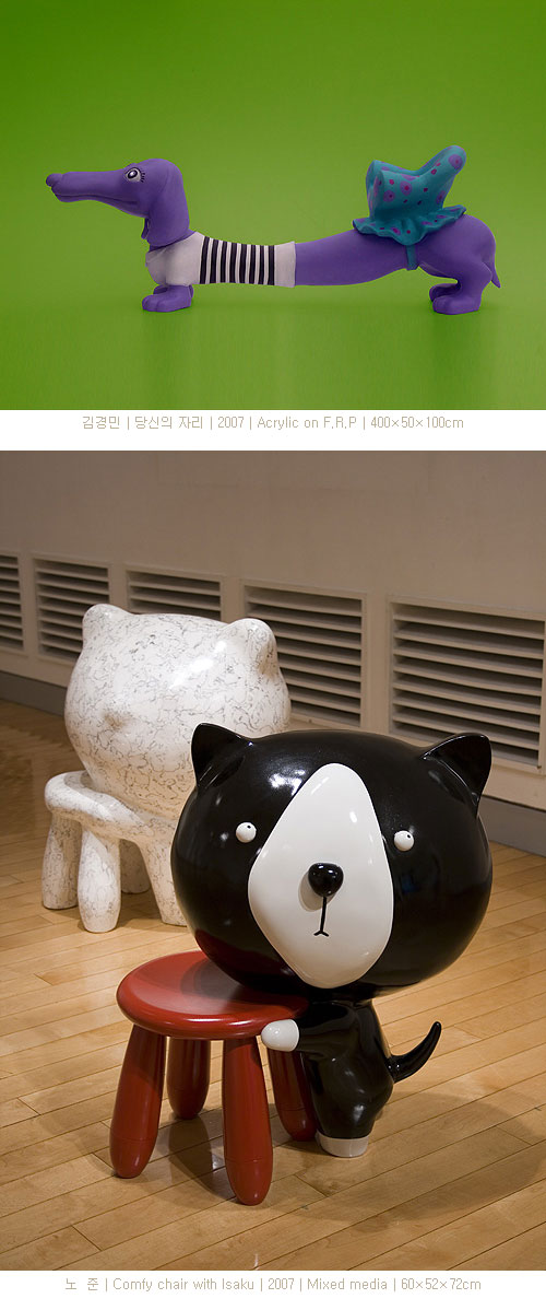 이번 전시는 평면, 입체 등 다양한 매체를 다루는 11명의 젊은 작가들로 이뤄졌습니다. 작가들은 전체적으로 표현하고자하는 대상과의 직접적이고 직관적인 경험을 바탕으로 표현하는데 치중합니다. <김경민, 노준, 유진영>은 재미있는 캐릭터를 가지고 친근한 이미지의 작품을 선보이고 <신치현, 정국택>은 인물이 가지고 있는 특징을 자신들만의 코드로 표현하였으며, <박소연, 이진혁, 한슬>은 평면이 가지고 있는 재료적 특성과 재미있는 주제의 표현에 새로움을 더해줍니다. <박은선, 신원재>의 설치에 가까운 작품은 공간에 대한 감각적이고 물리적인 일루전이 한층 더 전시에 재미를 부여해 줍니다. 끝으로 <안윤모>의 이야기가 담긴 동화 그림에서 즐거운 상상을 펼쳐 볼 수도 있습니다. 이번 전시의 작가들은 대부분 이미 잘 알려진 작가들이며 또한 우리 미술화단에서 가장 활발하게 활동하고 있는 작가들입니다. 이들이 말하고자하는 혹은 발견되어지는 재미는 현재 미술시장의 트렌드라 해도 과언이 아닐 것입니다.