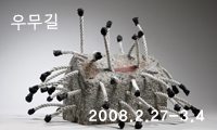 이외에도 작가는 집 형상의 바깥쪽으로 여러 크고 작은 노끈들이 노출돼 있는 일련의 작업들을 제안한다. 노끈들이 거푸집을 관통하도록 배열하고 이를 시멘트와 함께 굳힌 연후에 집 모양으로 시멘트를 털어낸 것이다. 이들 작업에서의 집 역시 작가의 자기 정체성을 상징하며 그 외부로 향한 끈들은 타자와의 관계를, 인연을 상징한다. 자기 혼자만으로는 살 수 없는, 타자와 더불어 살아갈 수밖에 없는 삶의 속성을 비유적으로 표현한 것이다. 그 관계의 끈은 나에게 호의적으로 작용하기도 하고 나아가 나를 깨우쳐주기도 하지만, 많은 경우에 있어서 나를 피폐하게 하기도 한다. 때로 나는 속수무책으로 엉클어져 있는 실타래(노끈뭉치)처럼 그 관계를 버거워하기조차 한다. 우무길의 작업에서 주체와 타자와의 관계는 이처럼 집 밖으로 연결된 노끈으로도 표현되고 있으며, 특히 집과 또 다른 집을 하나로 이어주는 끈에서 그 점이 더욱 분명해진다. 그 자체를 타자와의 연속성에 대한 인식으로 읽을 수 있는 것이다.