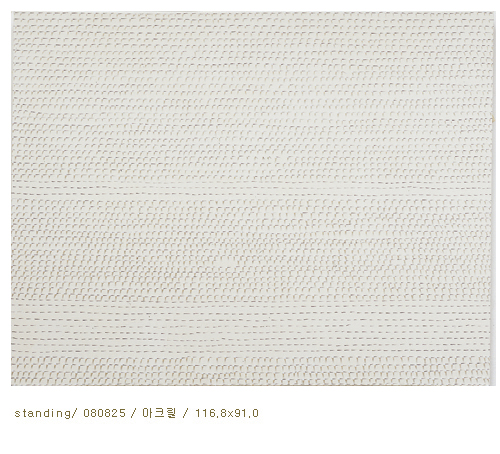 안료에 대한 작가 나름의 독특한 시선에서 출발하여 '물감 세우기'라 부를 수 있는 새로운 안료의 방법론을 선보인다. 기존의 관습적인 방식에서 벗어나 안료를 평면에서 직각으로 새워 앞으로 나오게끔 하는 입체적인 방식으로 전치시켜 색다른 차원의 표현을 보여준다.