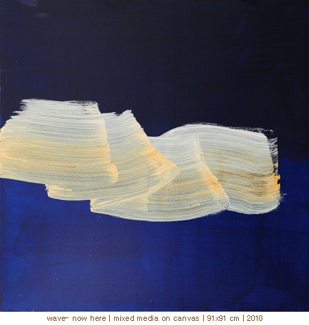 여기서 말하는 Wave는 우리말로 숨‘결’이나 바람‘결’ 또는 물‘결’이라고 할 때의 ‘결’을 의미한다. 사색과 사유를 통해 마음과 정신을 가다듬고 단숨에 그려낸 듯 정돈된 붓질, 생기 가득한 에너지가 있다. 마음이 가는 대로 가는 철학적 언어와 결합된 것이다. 붓질을 통해 지혜와 깨달음을 얻고자 하는 마음의 자세이다. 보이는 것보다 보이지 않는 기운과 절제된 감흥을 표현한다. 있음과 없음, 음과 양이 한 공간에서 소통 가능함을 보여준다.